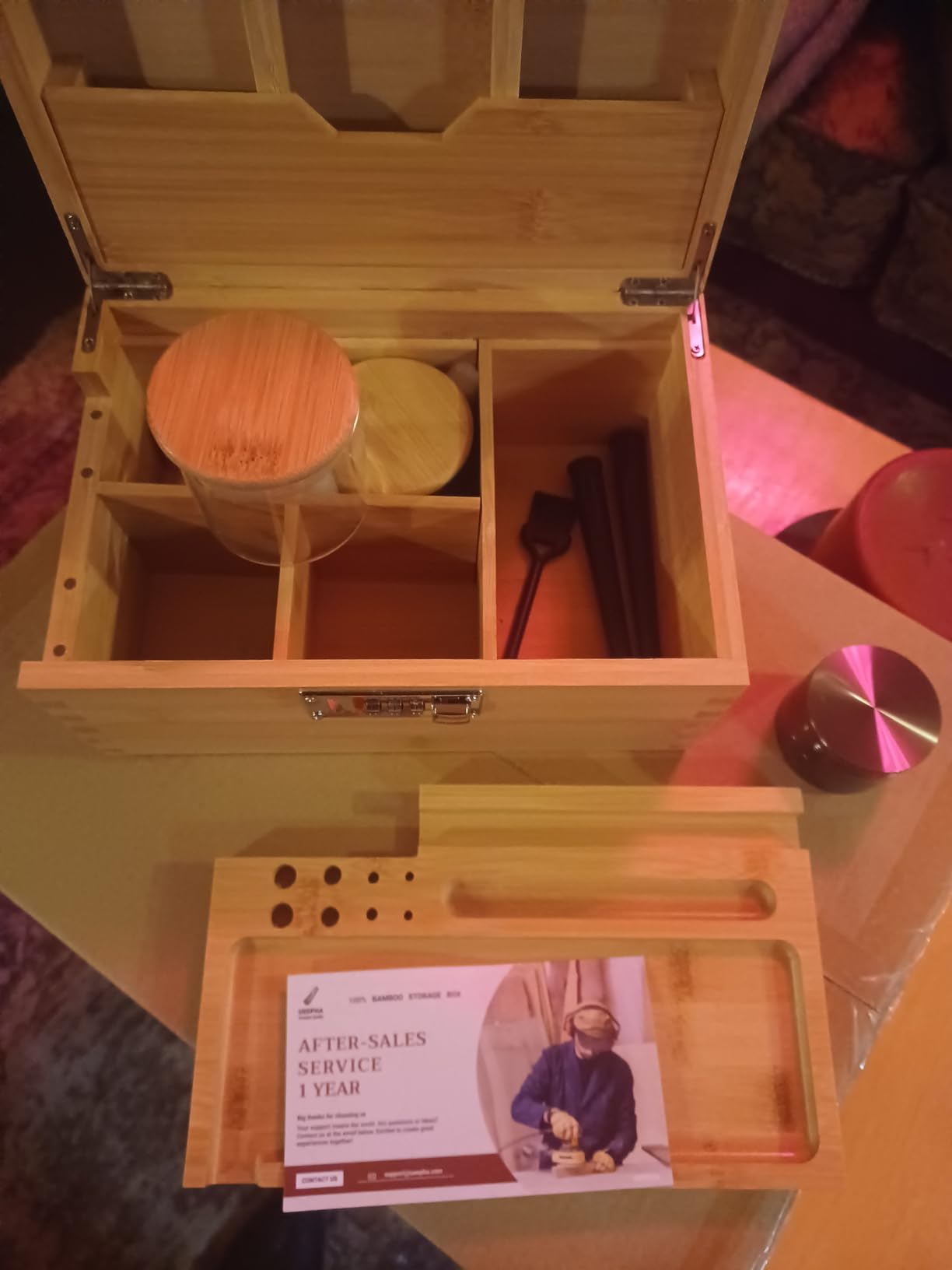 It’s a great bamboo stash box. The jars are a little bigger than I expected.